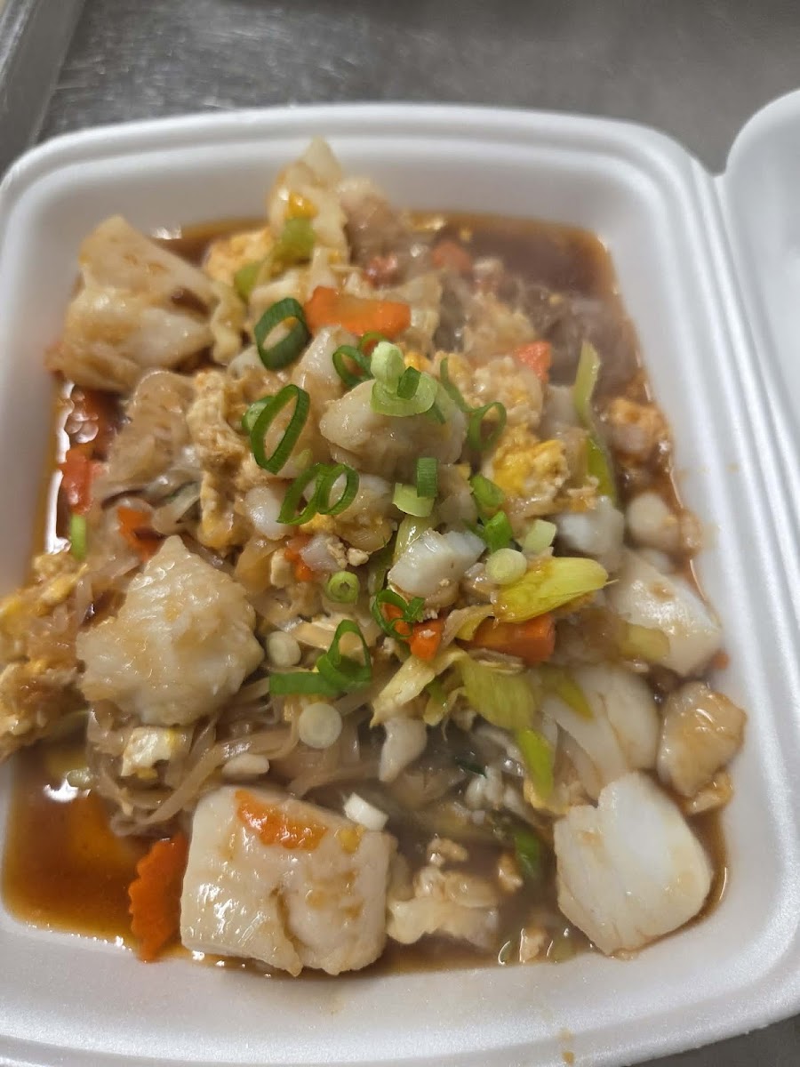For those who prefer seafood, Siam Orchid offers a delectable Nr 9 Torsk Filet Med Chilisauce. This dish features a tender cod fillet topped with a zesty chili sauce, giving it a bold and vibrant taste. If you're in the mood for something crispy, you can't go wrong with the Nr 2 Hellefisk Paneret, a crispy battered halibut dish that pairs wonderfully with the restaurant's homemade dipping sauce.